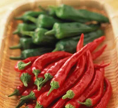 3.辣椒 尖辣椒辣的多,且果肉越薄,辣味越重。柿子形的圓椒多為甜椒,果肉越厚越甜脆,半辣味椒則介於兩者之間。