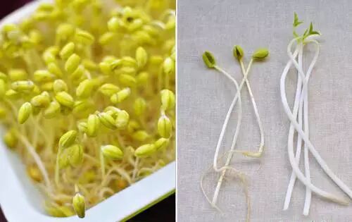 如何識別「化學豆芽」?選豆芽時,要先抓一把聞聞有沒有氨味,再看看有沒有鬚根,如果發現有氨味和無鬚根的,就不要購買和食用。 |